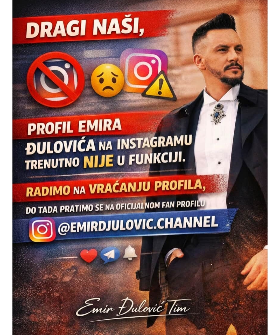 U razgovoru sa novinarima, Emir je naglasio kako smatra da su optužbe koje su iznesene protiv njega apsurdne i potpuno neutemeljene. Pjevač je otvoreno govorio o dodatnim problemima koje mu je ova situacija donijela, uključujući i ozbiljno narušavanje njegove reputacije unutar industrije zabave. U svijetu gdje su informacije dostupne na klik, teške optužbe mogu imati trenutne i dalekosežne posljedice. Dodatni udarac stigao je kada je njegov Instagram profil iznenada ugašen, što je dodatno zakomplikovalo njegovu situaciju, ostavljajući ga bez kanala za komunikaciju s obožavateljima.